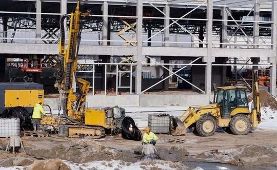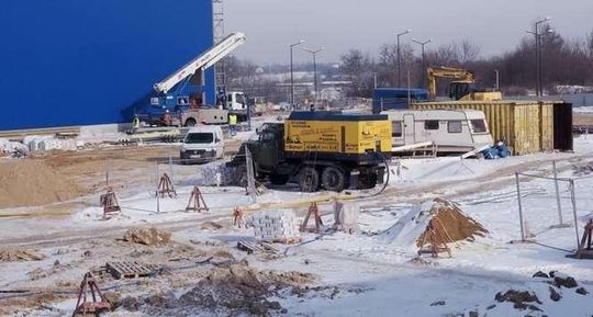 Pod koniec października uroczyście wmurowano kamień węgielny pod budowę sklepu. W tej chwili na placu budowy przy al. Spółdzielczości Pracy wznoszone są już pierwsze ściany.