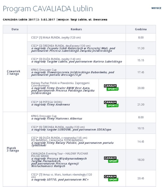 Cavaliada 2017 Lublin - program