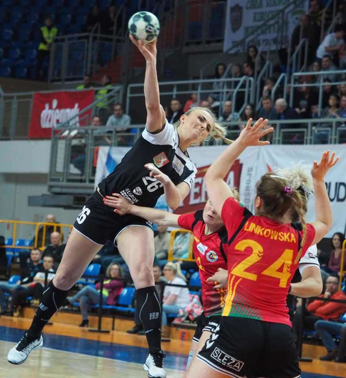 Lubelskie piłkarki ręczne w kolejnym meczu domowym bez najmniejszych problemów rozgromiły drużynę KPR Gminy Kobierzyce 35:12 i utrzymały przewagę nad innymi czołowymi zespołami superligi kobiet. Fot. Maciej Kaczanowski