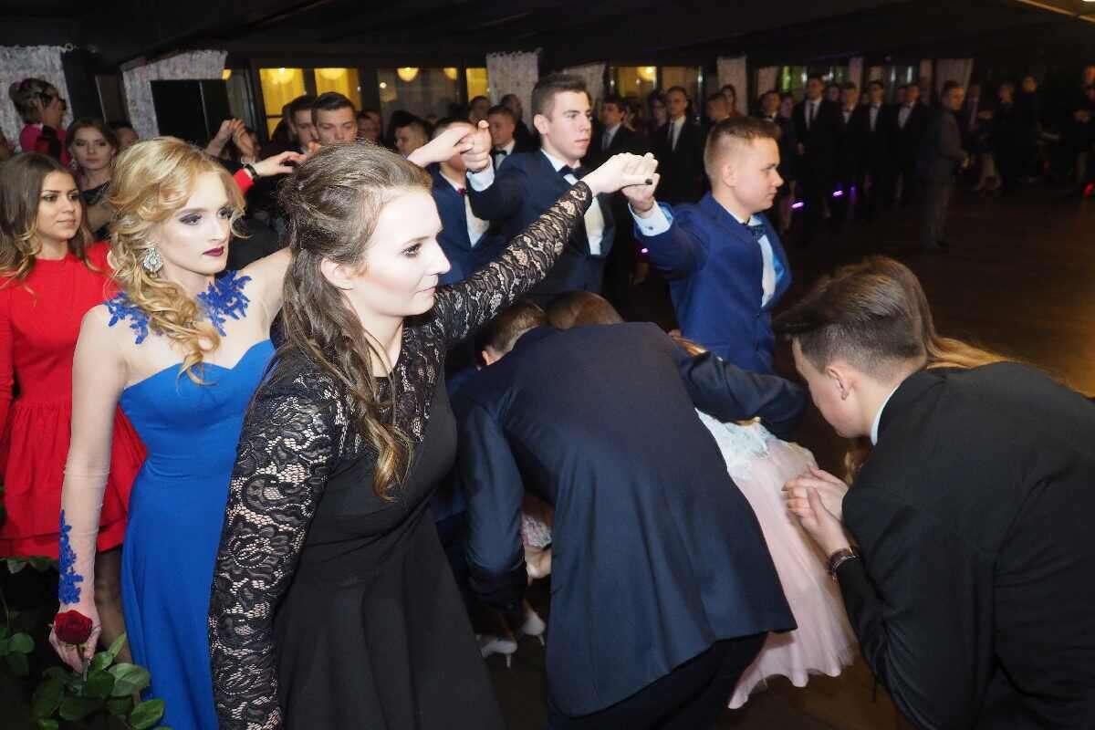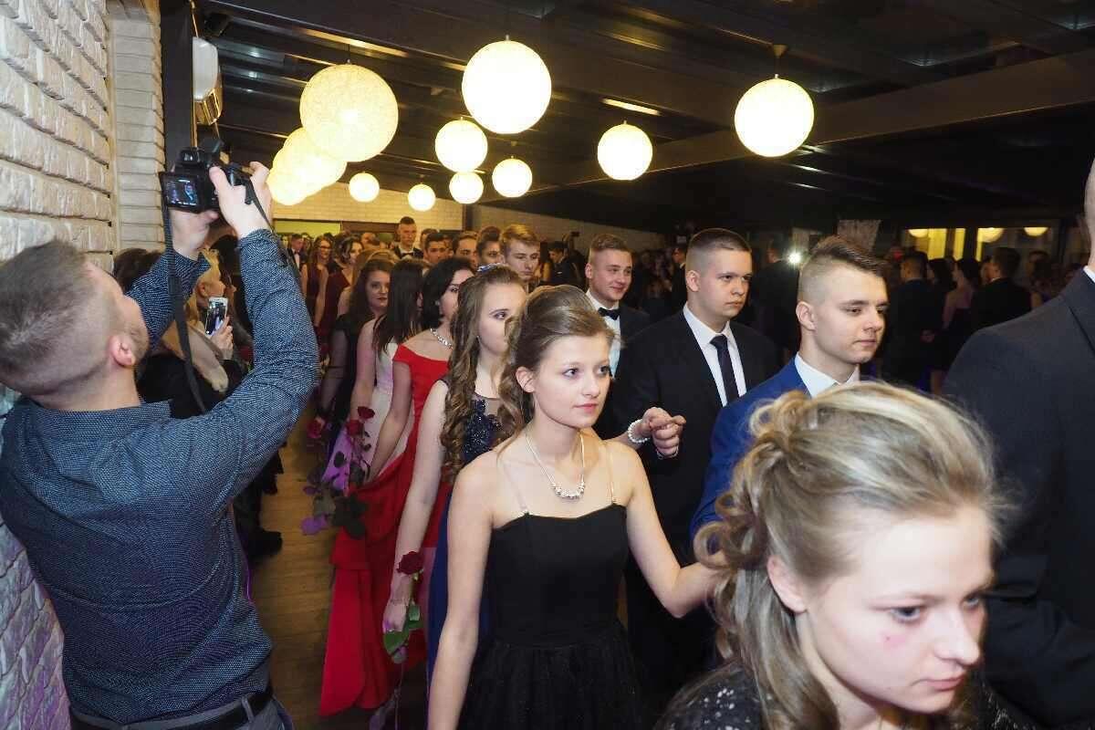 Uczniowie z lubelskiego VI LO zorganizowali sobie studniówkę w hotelu "Korona" w Zemborzycach Tereszyńskich. Na balu, w takt muzyki wykonywanej przez zespół "Pozytyvni" bawiło się 166 osób. Fot. Maciej Kaczanowski