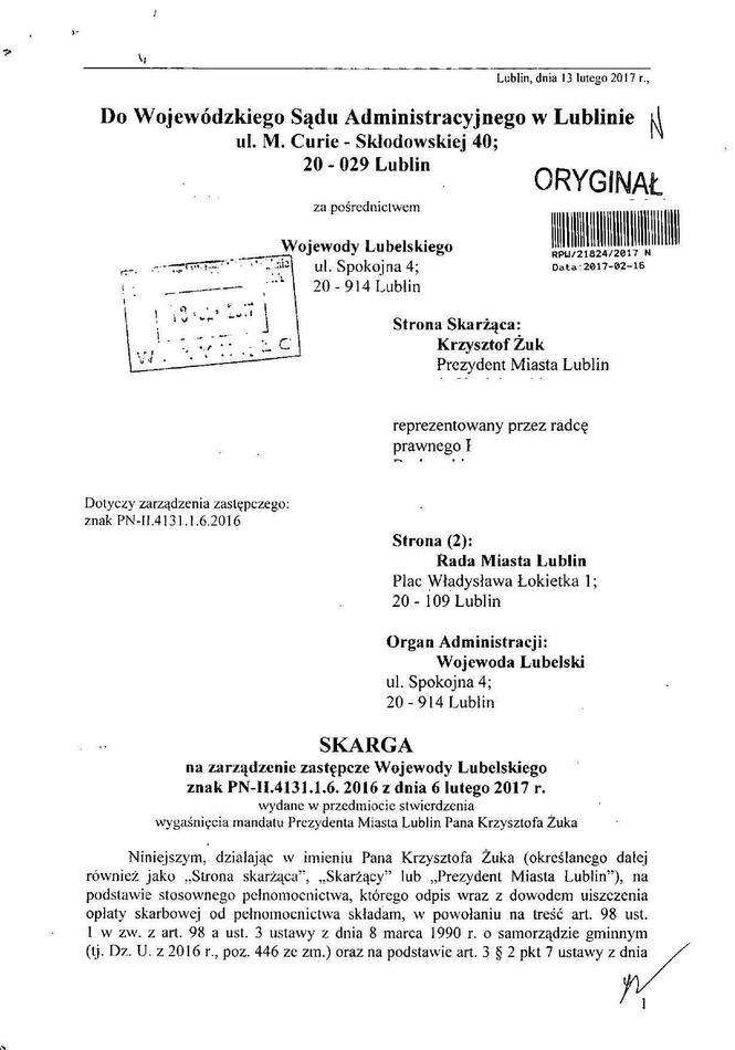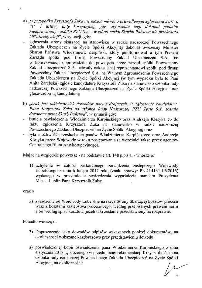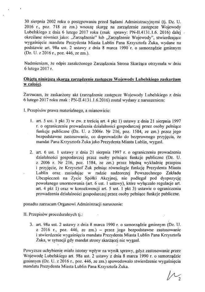 Treść skargi Krzysztofa Żuka