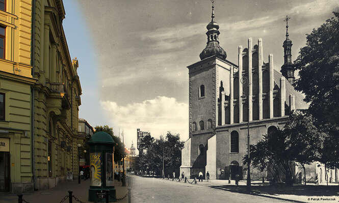 Plac Łokietka z Bramą Krakowską i Wieżą Trynitarską