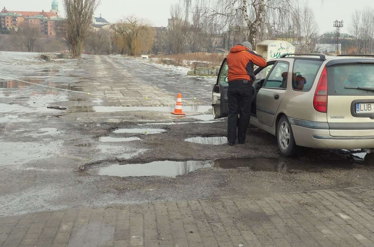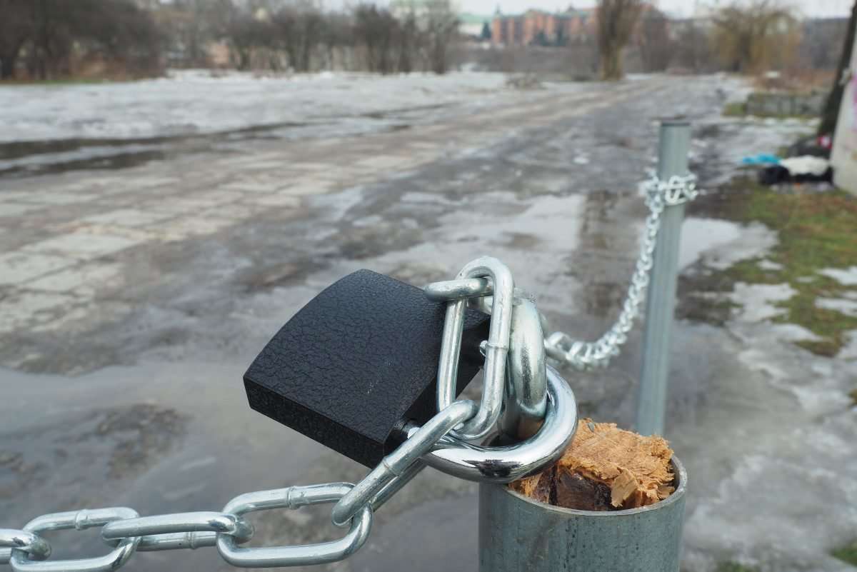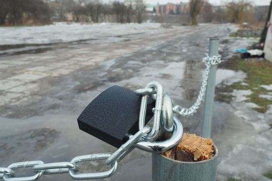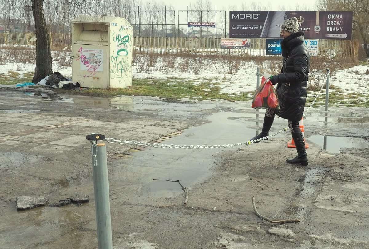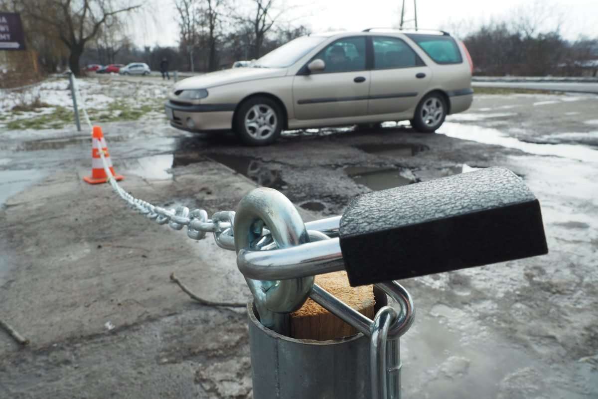 Parkowaniem na ul. Rusałki w Lublinie już tylko odpłatnie. Działka, na której kierowcy urządzili dziki parking została ogrodzona słupkami i łańcuchem. Fot. Maciej Kaczanowski