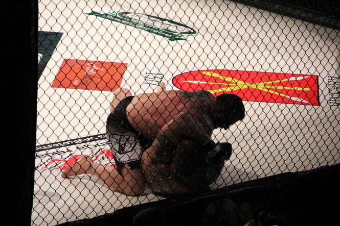 Adam Maciejewski w czasie gali MMA Thunderstrike w Kraśniku, w lutym 2014 roku
