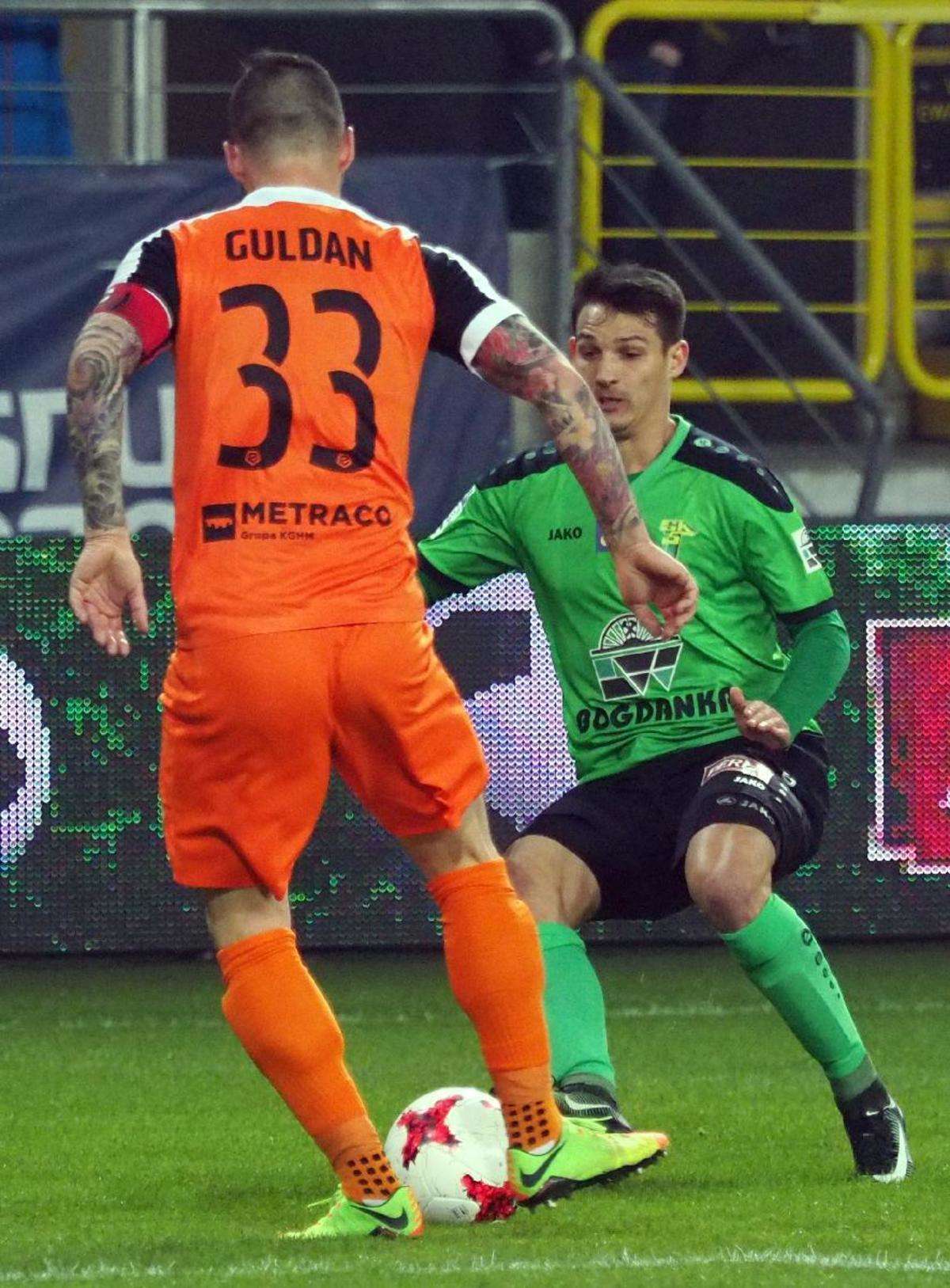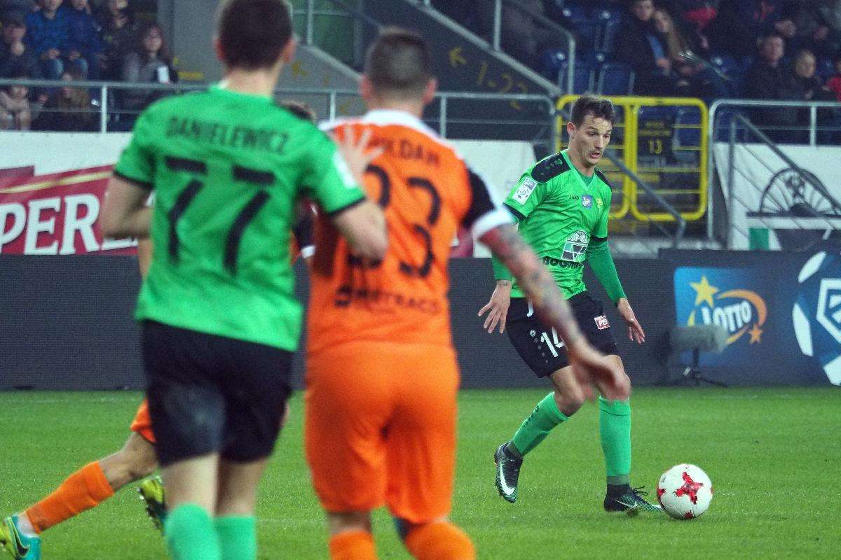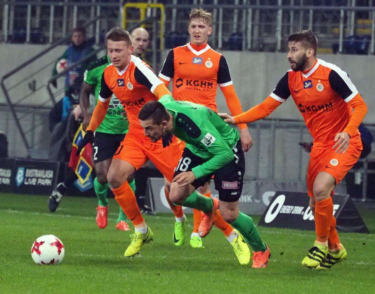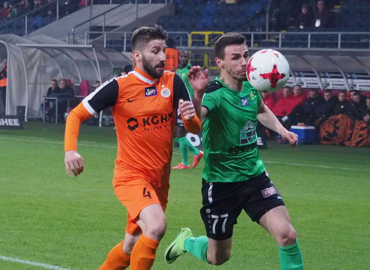 Górnik Łęczna przegrał z Zagłębiem Lubin 0:1 w zaległym spotkaniu 21. kolejki. Gola na wagę trzech punktów dla gości strzelił w 5 minucie spotkania Filip Starzyński. Fot. Maciej Kaczanowski