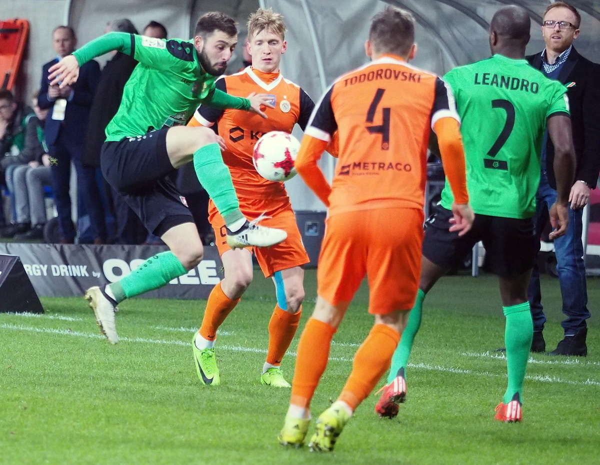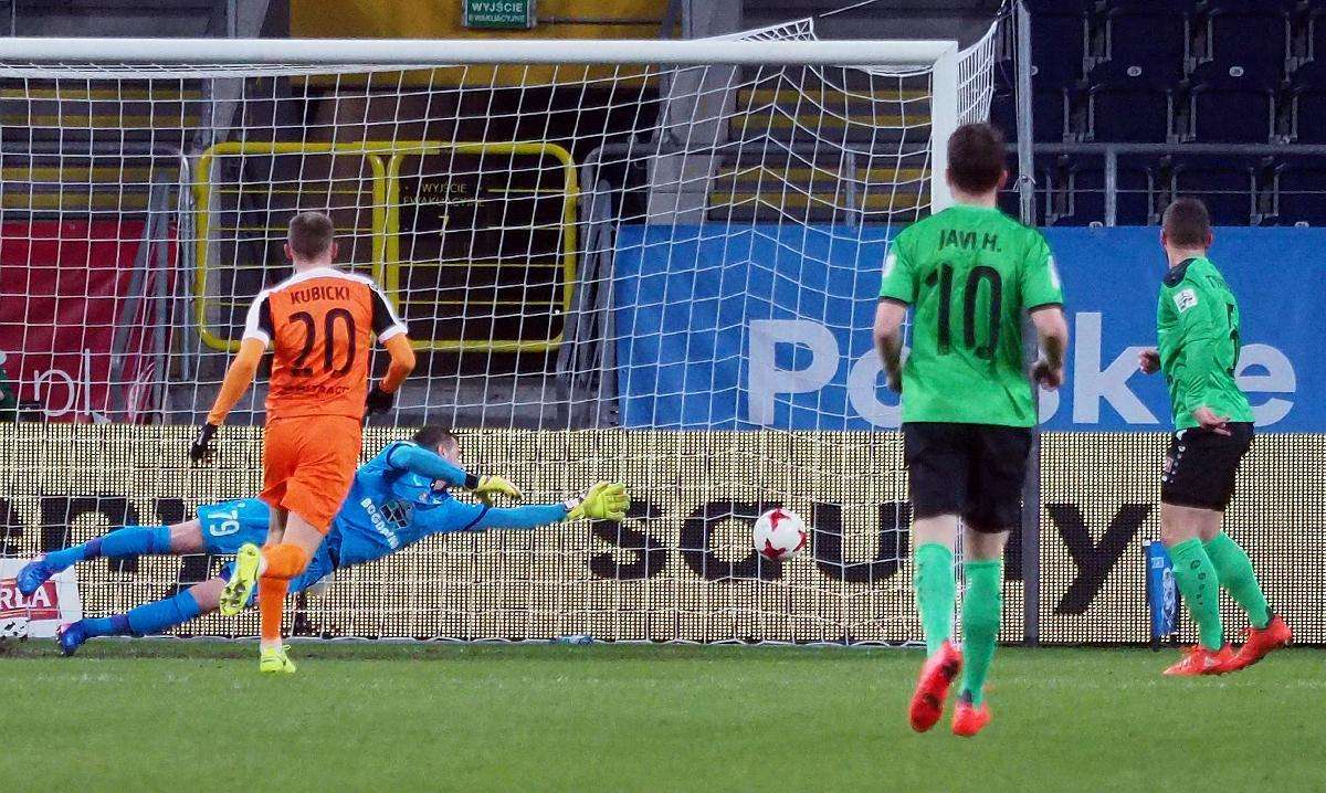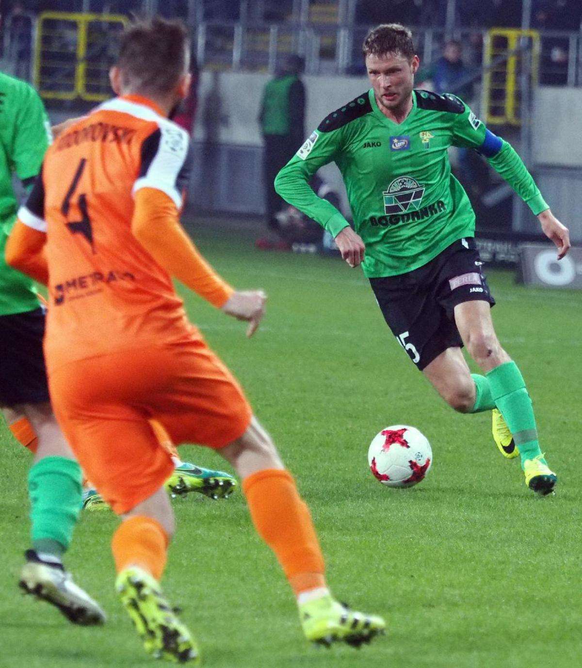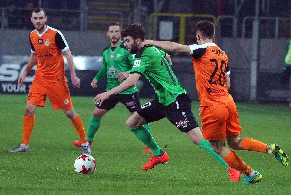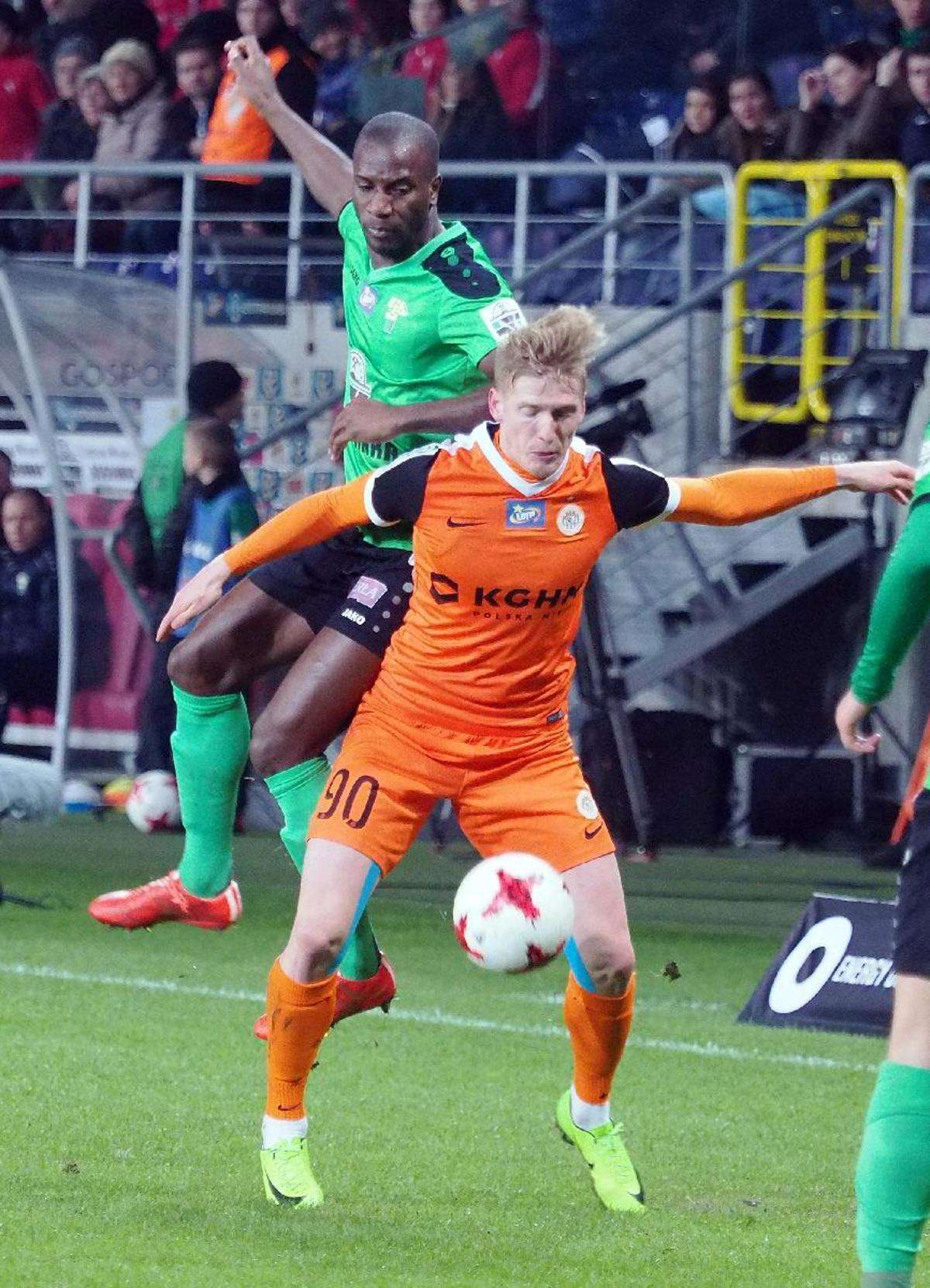Górnik Łęczna przegrał z Zagłębiem Lubin 0:1 w zaległym spotkaniu 21. kolejki. Gola na wagę trzech punktów dla gości strzelił w 5 minucie spotkania Filip Starzyński. Fot. Maciej Kaczanowski