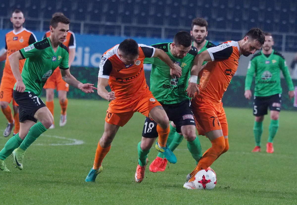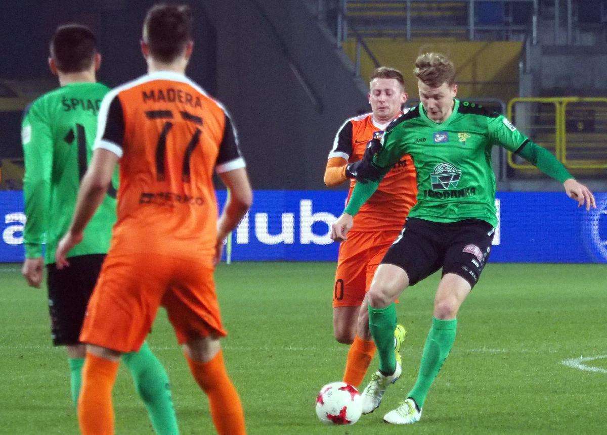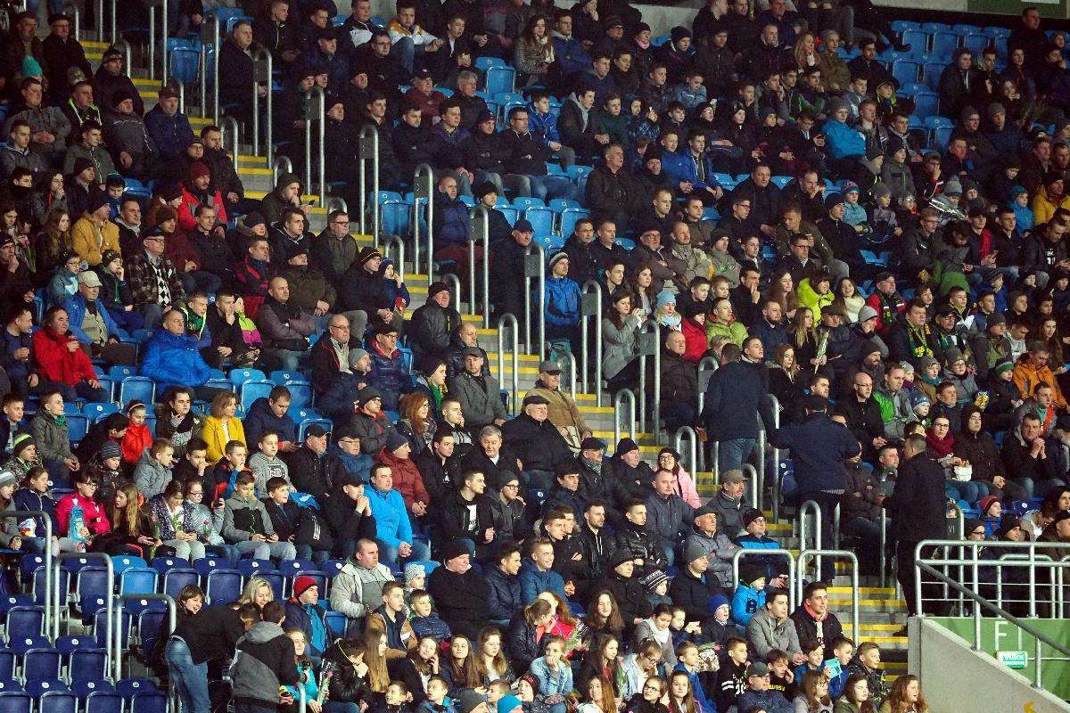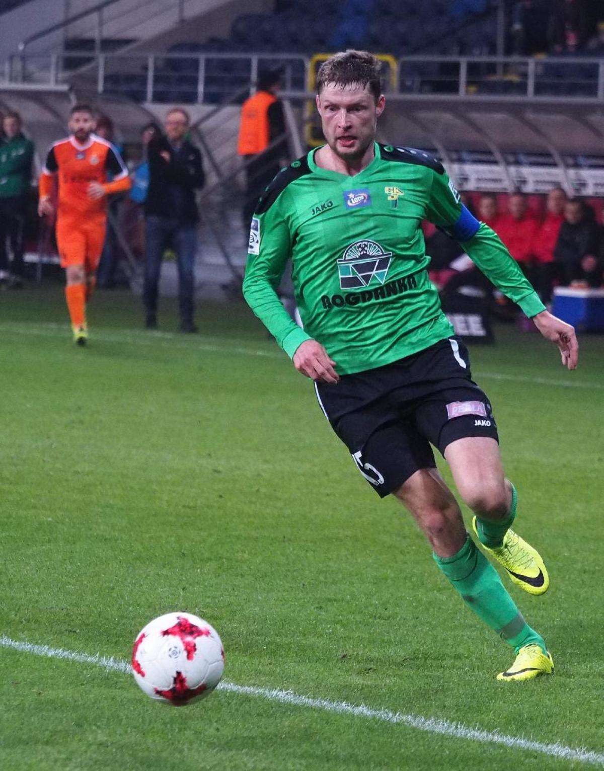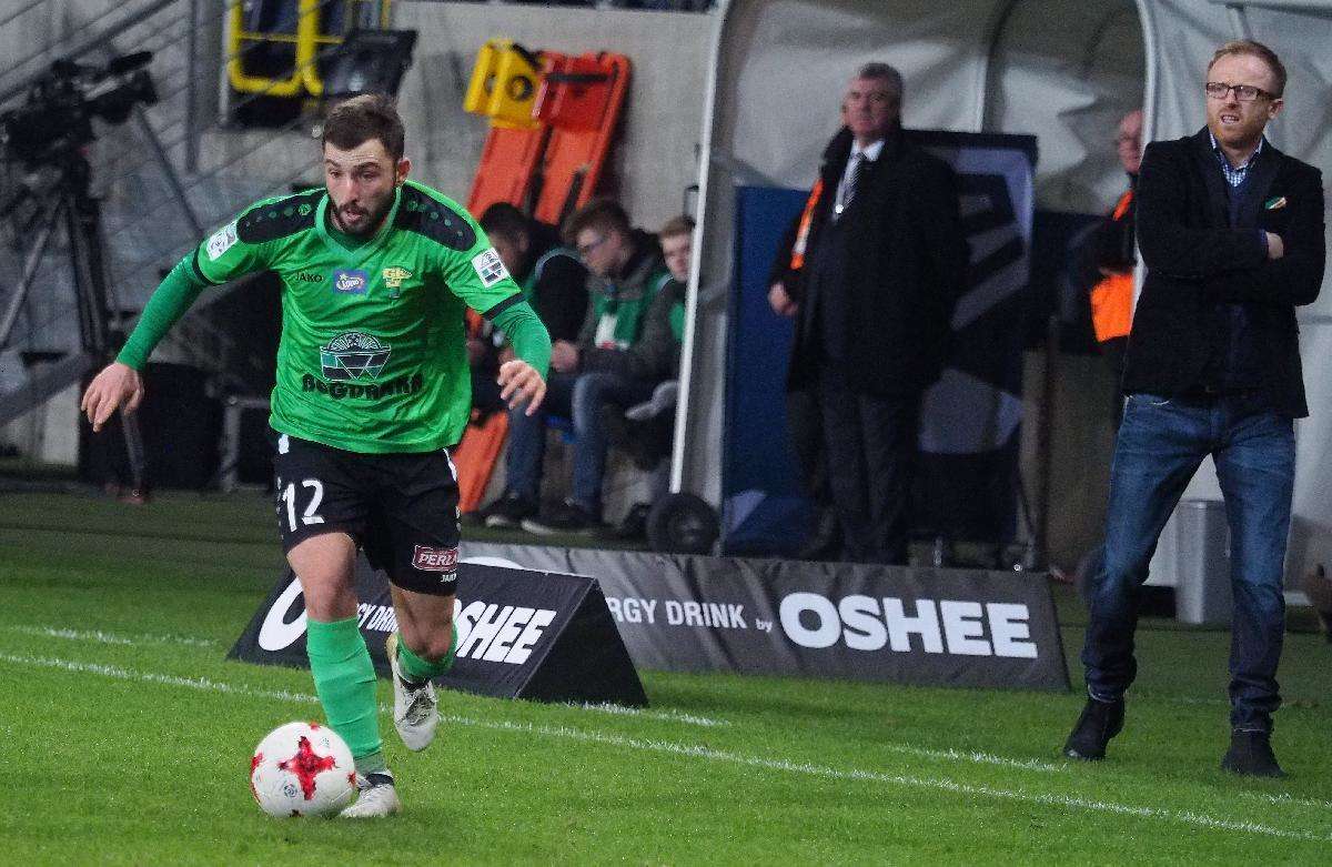 Górnik Łęczna przegrał z Zagłębiem Lubin 0:1 w zaległym spotkaniu 21. kolejki. Gola na wagę trzech punktów dla gości strzelił w 5 minucie spotkania Filip Starzyński. Fot. Maciej Kaczanowski