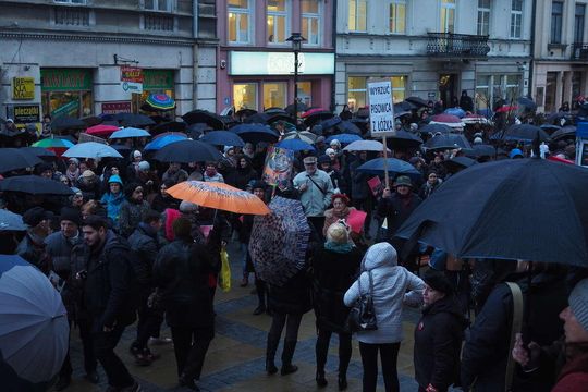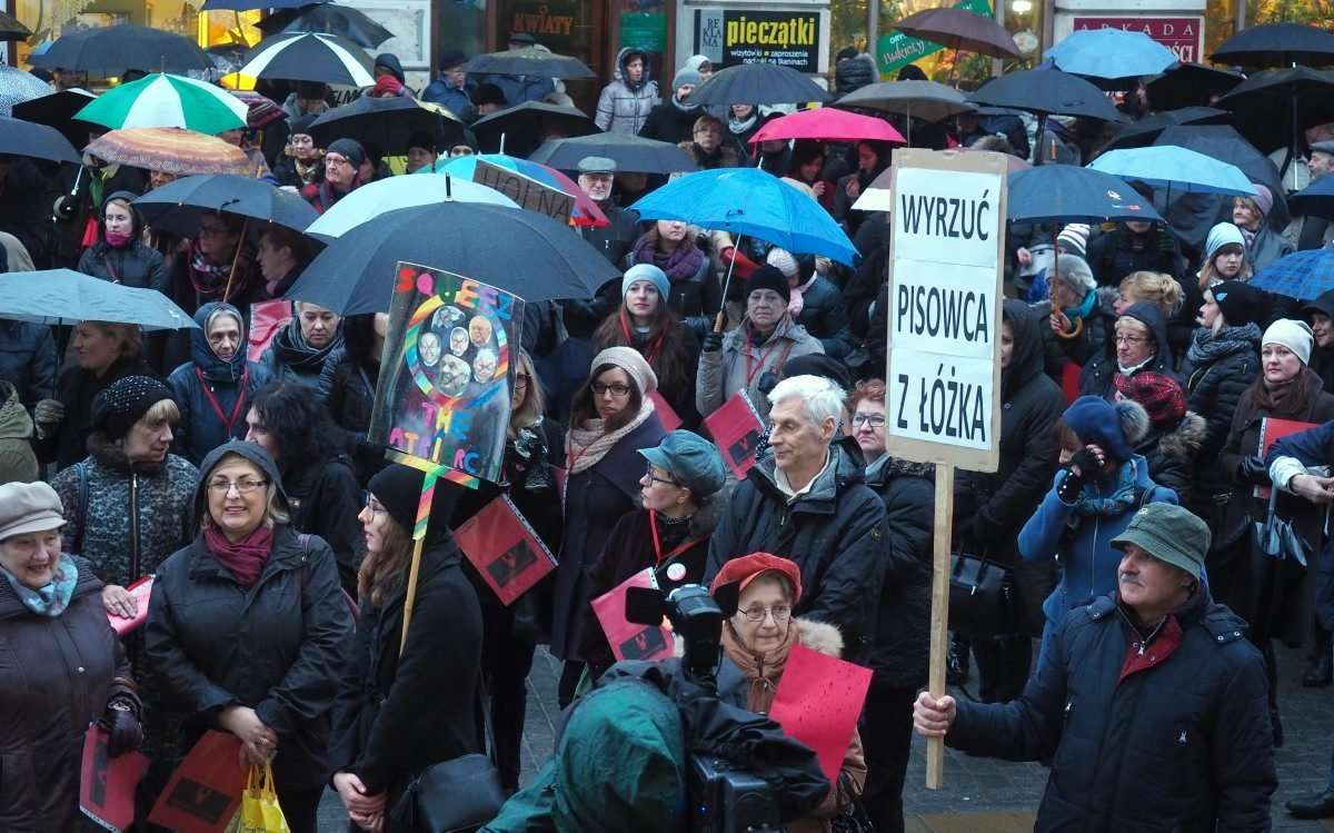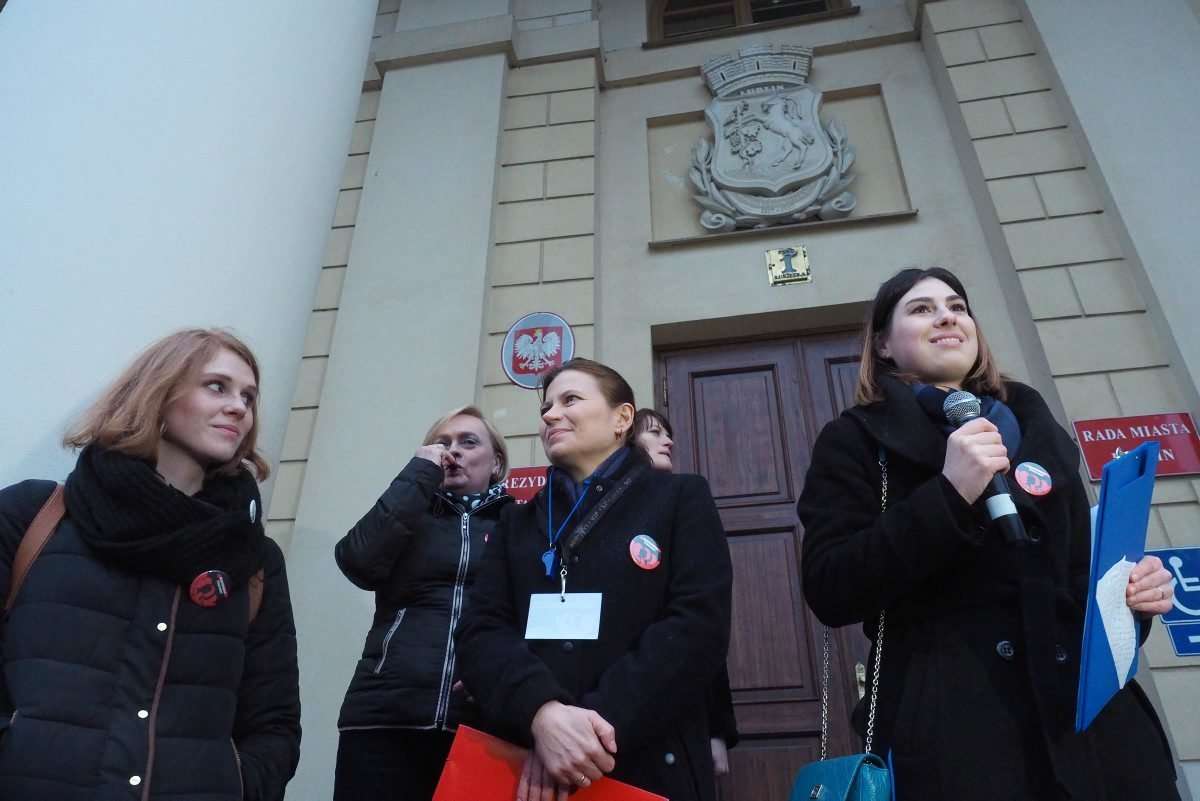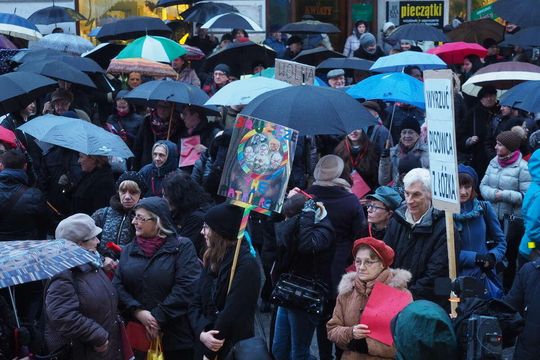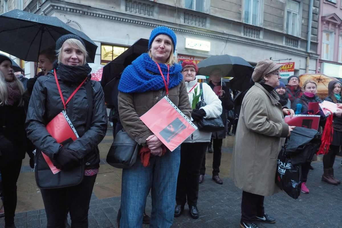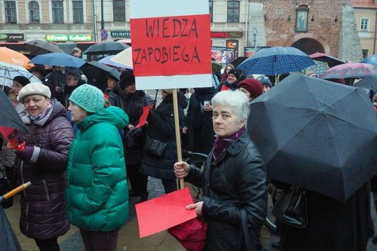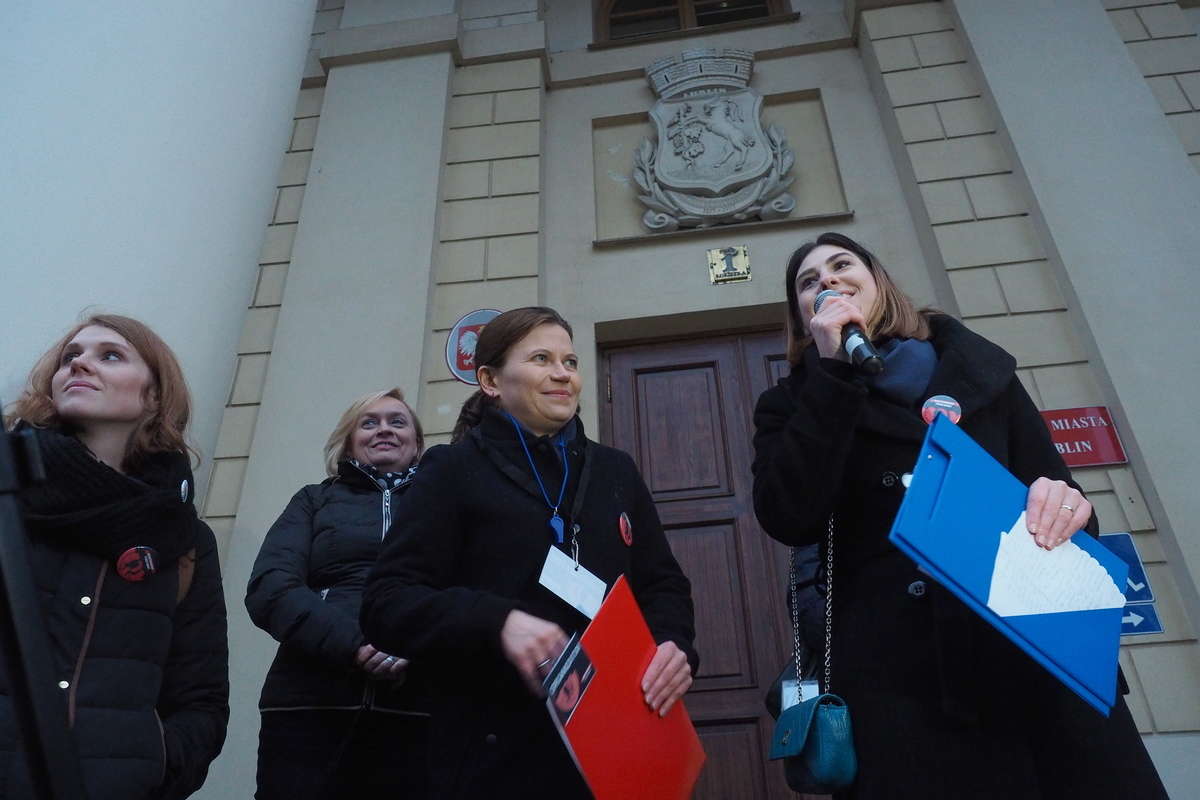 Kilkaset kobiet i mężczyzn protestowało na pl. Łokietka w Lublinie w ramach Międzynarodowego Strajku Kobiet. Punktualnie o godz. 18 uczestnicy strajku pokazali władzy czerwone kartki. To ostrzeżenie dla władzy, która prowadzi politykę przeciwko kobietom. Fot. Maciej Kaczanowski