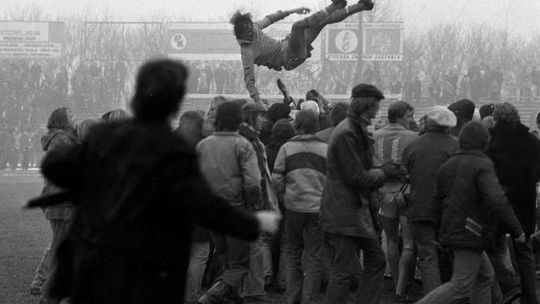 Ten transparent był solą w oku ówczesnych władz i cenzury. "POP" to skrót od nazwy Podstawowa Organizacja Partyjna. Tymczasem chodziło o Andrzeja Popa, jednego z najlepszych piłkarzy w historii Motoru.