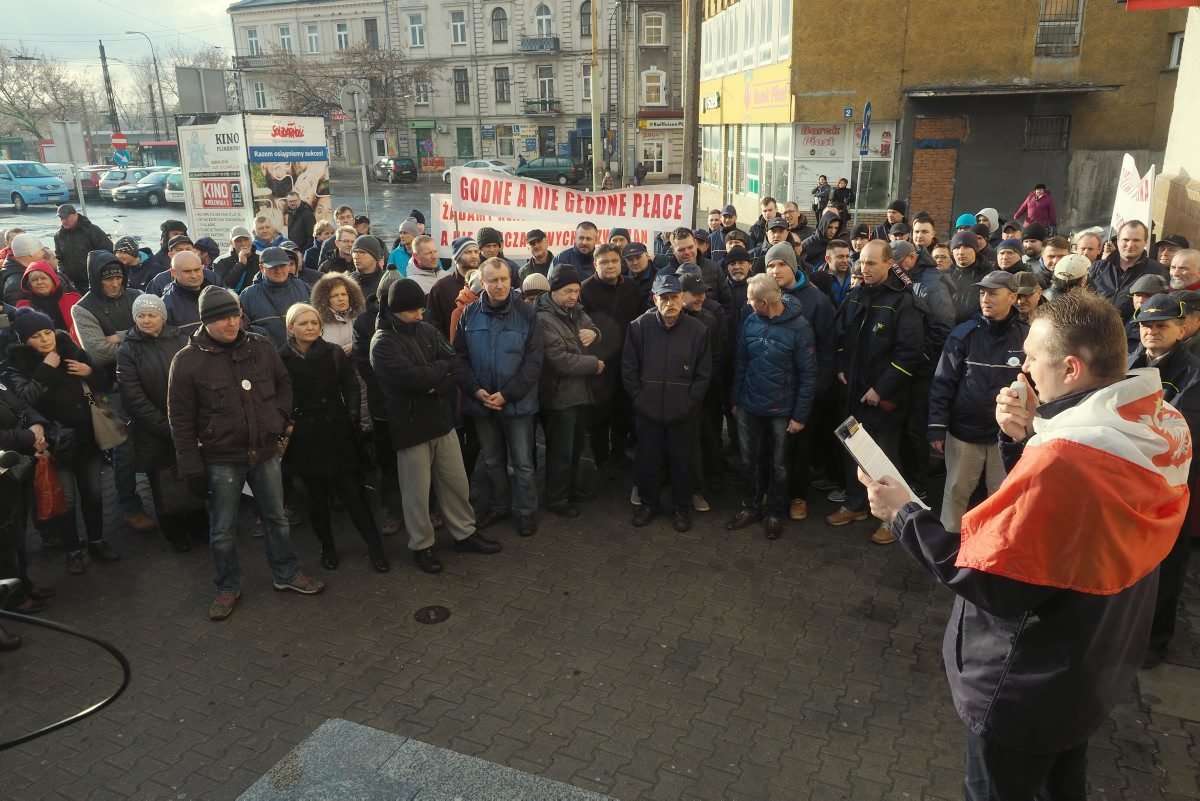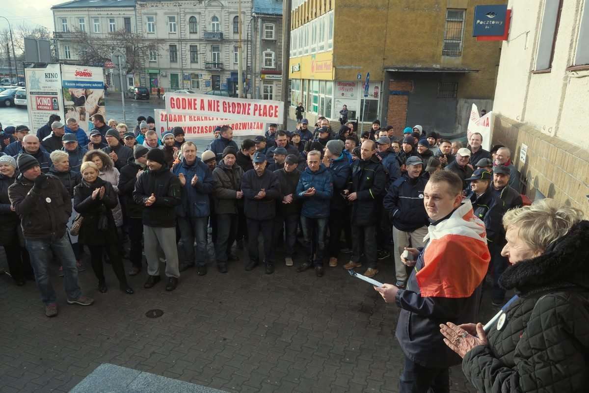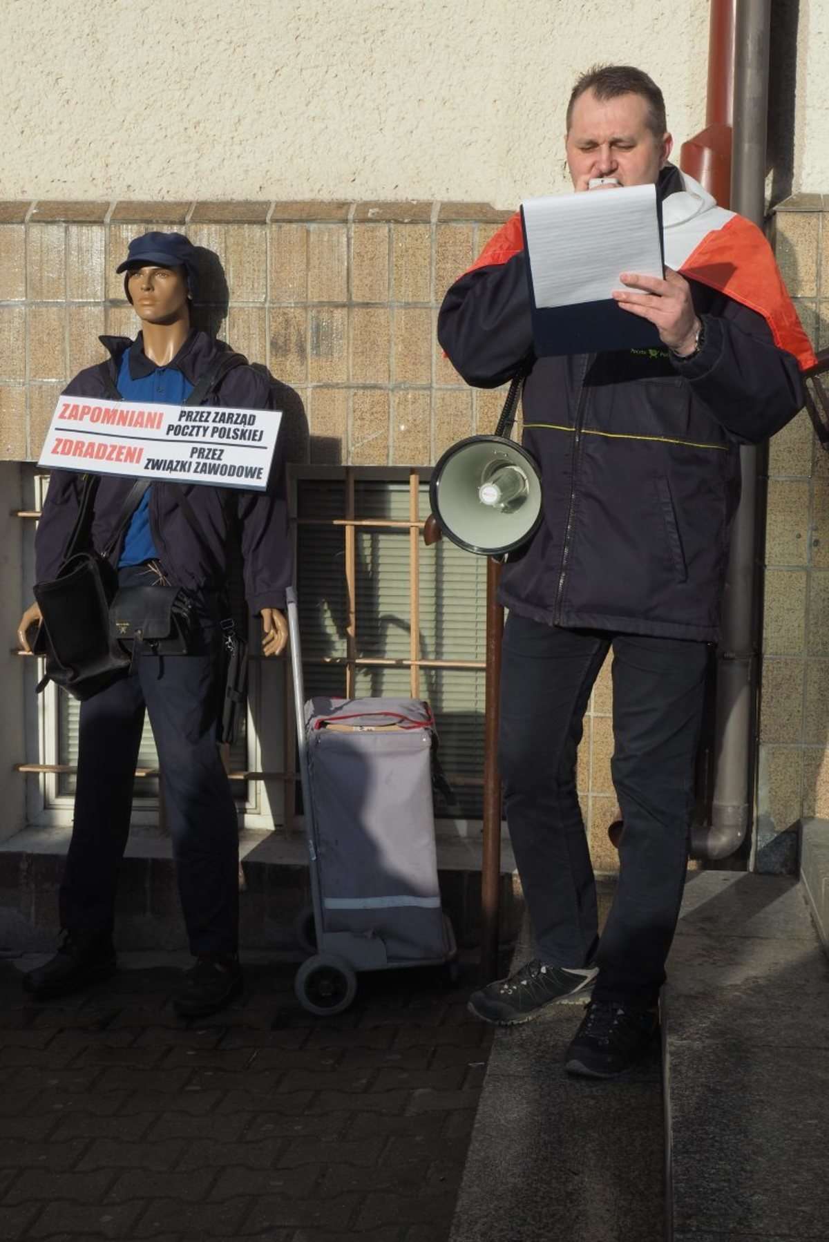 Pracownicy Poczty Polskiej protestowali przed głównym wejściem do Urzędu Pocztowego Lublin 2 ul. Pocztowa 1. Fot. Maciej Kaczanowski