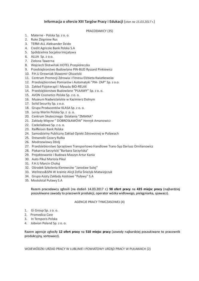 Wystawcy na targach pracy w Puławach