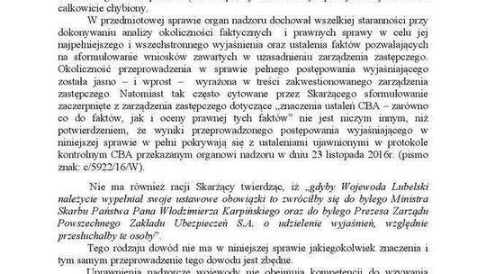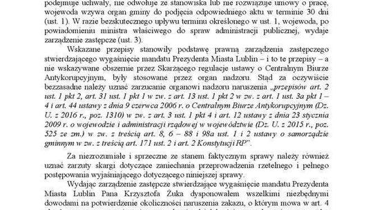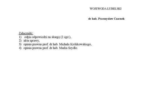 Odpowiedź wojewody lubelskiego na skargę prezydenta Lublina