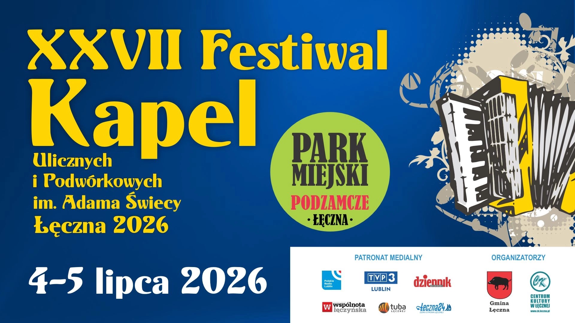 Festiwal odbędzie się 4 i 5 lipca w Łęcznej. Jako scena festiwalowa posłuży malowniczy park "Podzamcze" oraz przestrzeń miejska.
