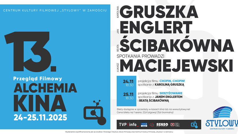 Zbliża się 13. Przegląd Filmowy Alchemia Kina. W Centrum Kultury Filmowej „Stylowy” w Zamościu zostaną pokazane dwa ciekawe filmy, a po każdej z projekcji zaplanowano spotkania z twórcami. Przyjadą aktorzy: Karolina Gruszka, Jan Englert i Beata Ścibakówna.