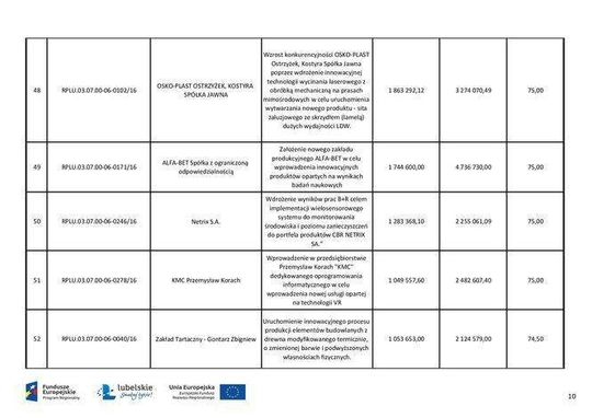 Pieniądze unijne dla przedsiębiorstw - lista dofinansowanych projektów