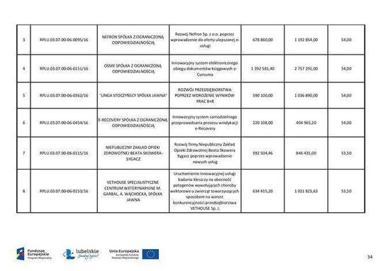 Pieniądze unijne dla przedsiębiorstw - lista dofinansowanych projektów