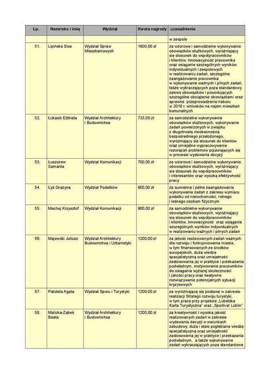 Lista nagrodzonych pracowników UM Lublin w 2016 roku