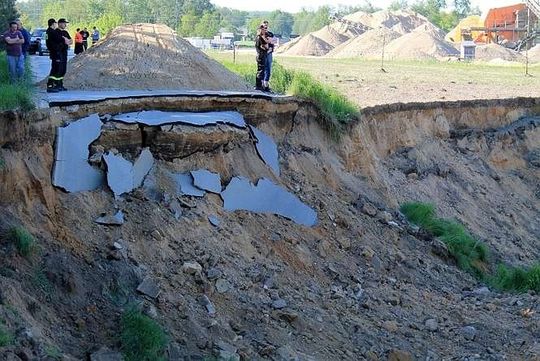 Osuwisko w okolicach kopalni piachu, w pobliżu miejscowości Zastawie