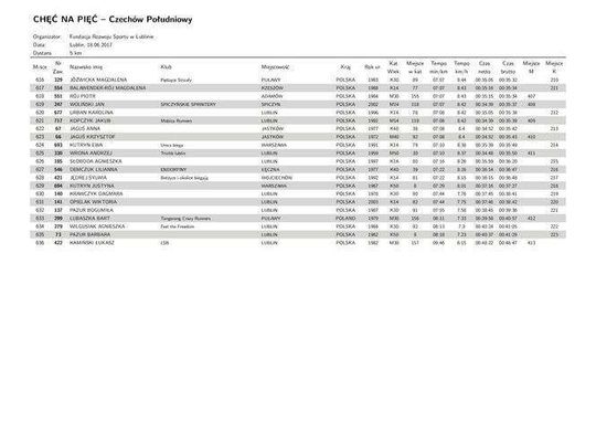 Bieg Chęć na pięć. 18.06.2017 - WYNIKI OPEN