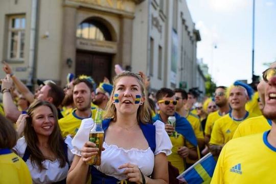 Kibice Szwecji i Polski przed meczem