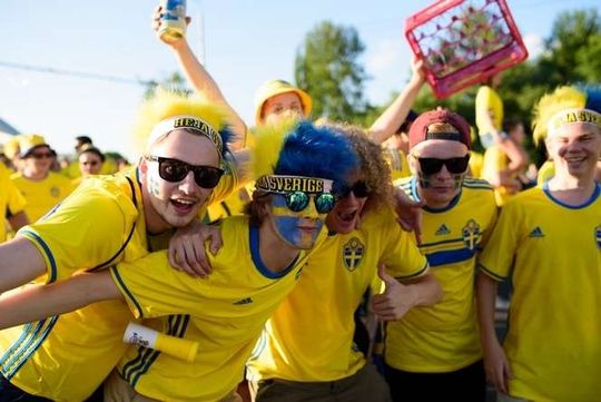 Kibice Szwecji i Polski przed meczem