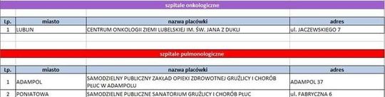 Sieć szpitali w Lubelskiem. Lista