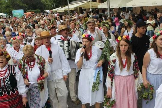 Wianki nad Wisłą w Warszawie - zespół Kalina z Markuszowa prowadzi korowód warszawiaków nad Wisłę