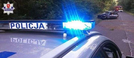 Huta Dąbrowa. BMW wypadło z drogi i ścięło kilka drzew