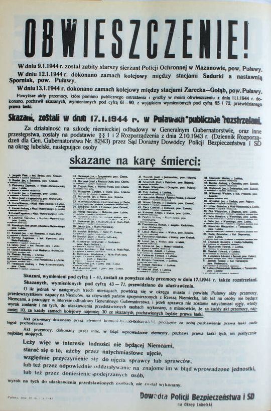 Niemieckie obwieszczenie o publicznej egzekucji w Puławach