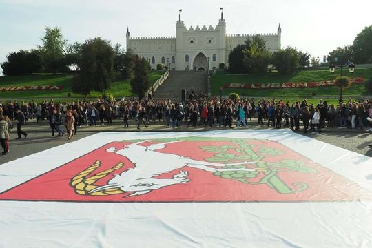 Zdjęcie: Licealiści Lublinowi: flaga miasta ułożona z paraso...