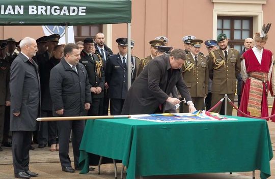 Zdjęcie: Wielonarodowa Brygada otrzymała sztandar na dziedzi...