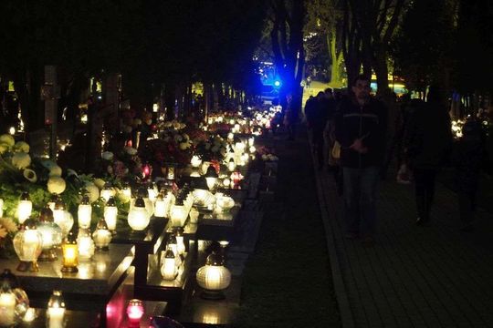 Wszystkich Świętych w Lublinie: Cmentarz przy ul. Unickiej wieczorem