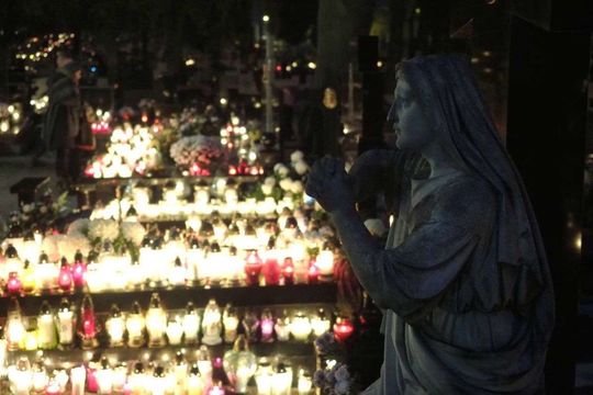 Wszystkich Świętych w Lublinie: Cmentarz przy ul. Unickiej wieczorem