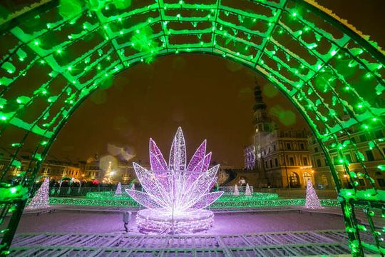 Zdjęcie: Zima i iluminacje na Rynku Wielkim w Zamościu