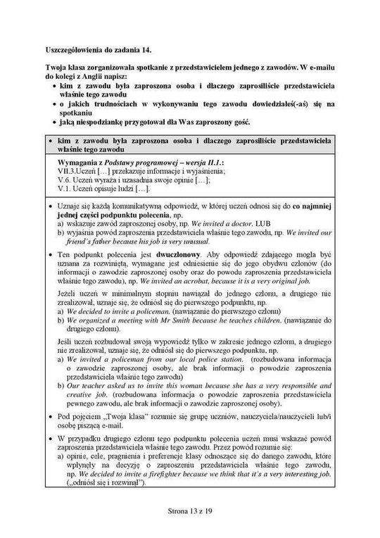 Odpowiedzi - egzamin ósmoklasisty 2018/2019 ANGIELSKI