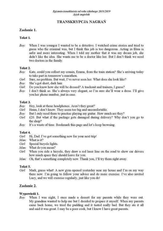 Odpowiedzi - egzamin ósmoklasisty 2018/2019 ANGIELSKI