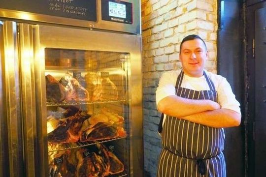Restauracja ma specjalistyczną szafę, gdzie tygodniami dojrzewa wołowina. Dojrzewając nabiera smaku, aromatu, ostrości. Tatar z takiego mięsa ma inny, bogatszy, bardziej zdecydowany smak. Zjecie tu „klasykę”, czyli tatar siekany z sezonowanej polędwicy wołowej, żółtko, jaja, cebula, ogórek kiszony, marynowane kurki, musztarda dijon.