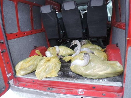 Strażacy ratowali łabędzie na jeziorze