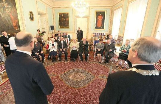 Prezydent Krzysztof Żuk odznaczył medalami pary świętujące 50-lecie pożycia małżeńskiego. Okrągły jubileusz Złotych Godów obchodziło 6 małżeństw z Lublina. Uroczystość odbyła się w sobotę w Trybunale Koronnym. Fot. Maciej Kaczanowski