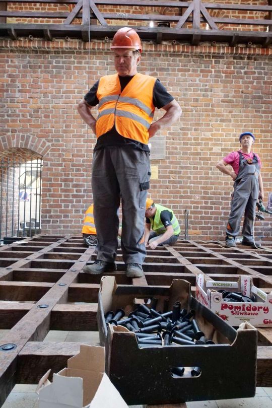 Montaż kraty bronnej na Bramie Krakowskiej