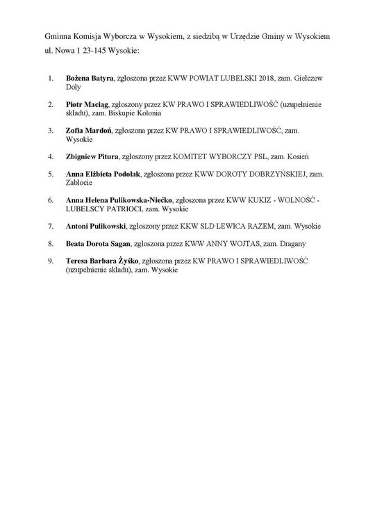 Składy terytorialnych komisji wyborczych w woj. lubelskim