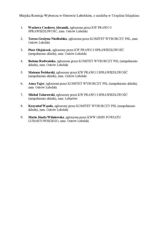 Składy terytorialnych komisji wyborczych w woj. lubelskim