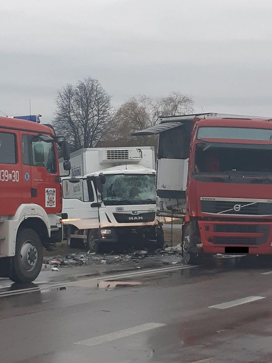 Wypadek w Ciecierzynie: Zderzenie ciężarówek