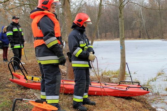 Lodowe ćwiczenia strażaków w Puławach