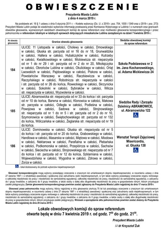 Referendum ws. górek czechowskich. Lista lokali do głosowania