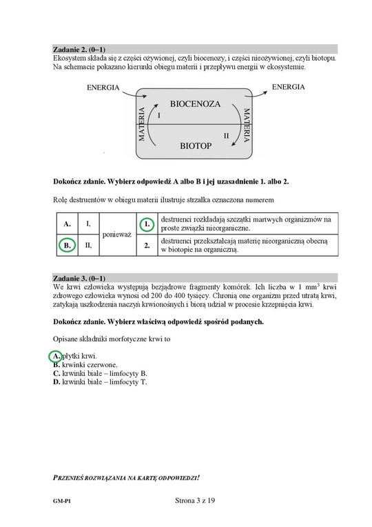 Egzamin gimnazjalny 2019. Przedmioty przyrodnicze. Odpowiedzi