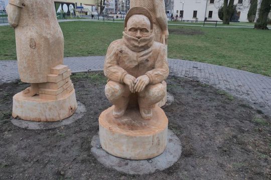 Janusz, Grażyna, Sebik na placu przy Centrum Kultury
