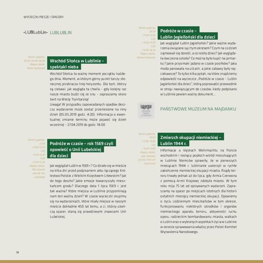Sezon Lublin 2019. Folder z atrakcjami turystycznymi