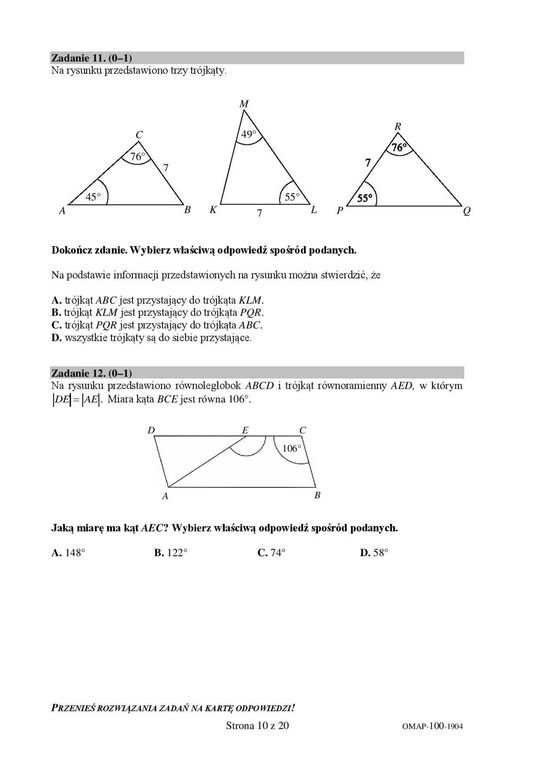 Zdjęcie: Egzamin ósmoklasisty 2019 matematyka. Arkusze CKE