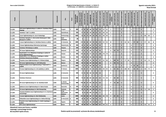 Matura 2019 - wyniki we wszystkich szkołach woj. lubelskiego